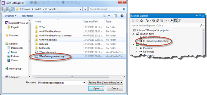 Sera necesario definir un archivo de TestSetting el cual no ayudara a configurar el entorno de prueba, para ello agregamos este archivo usando la opción